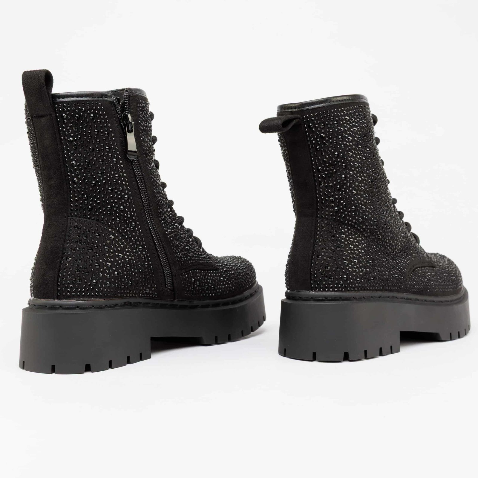 استعدي لتتألقي هذا الشتاء مع هذا الحذاء الشتوي المستورد الذي يجمع بين القوة، الفخامة، والراحة في تصميم واحد يلفت الأنظار من أول نظرة. يأتي هذا البوت بتصميم عصري جريء مستوحى من موضة الأحذية القتالية (Combat Boots) ولكنه مُطور بلمسات أنثوية راقية بفضل الطبقة الخارجية المرصعة بتفاصيل لامعة تمنحه مظهرًا فخمًا ومميزًا.
