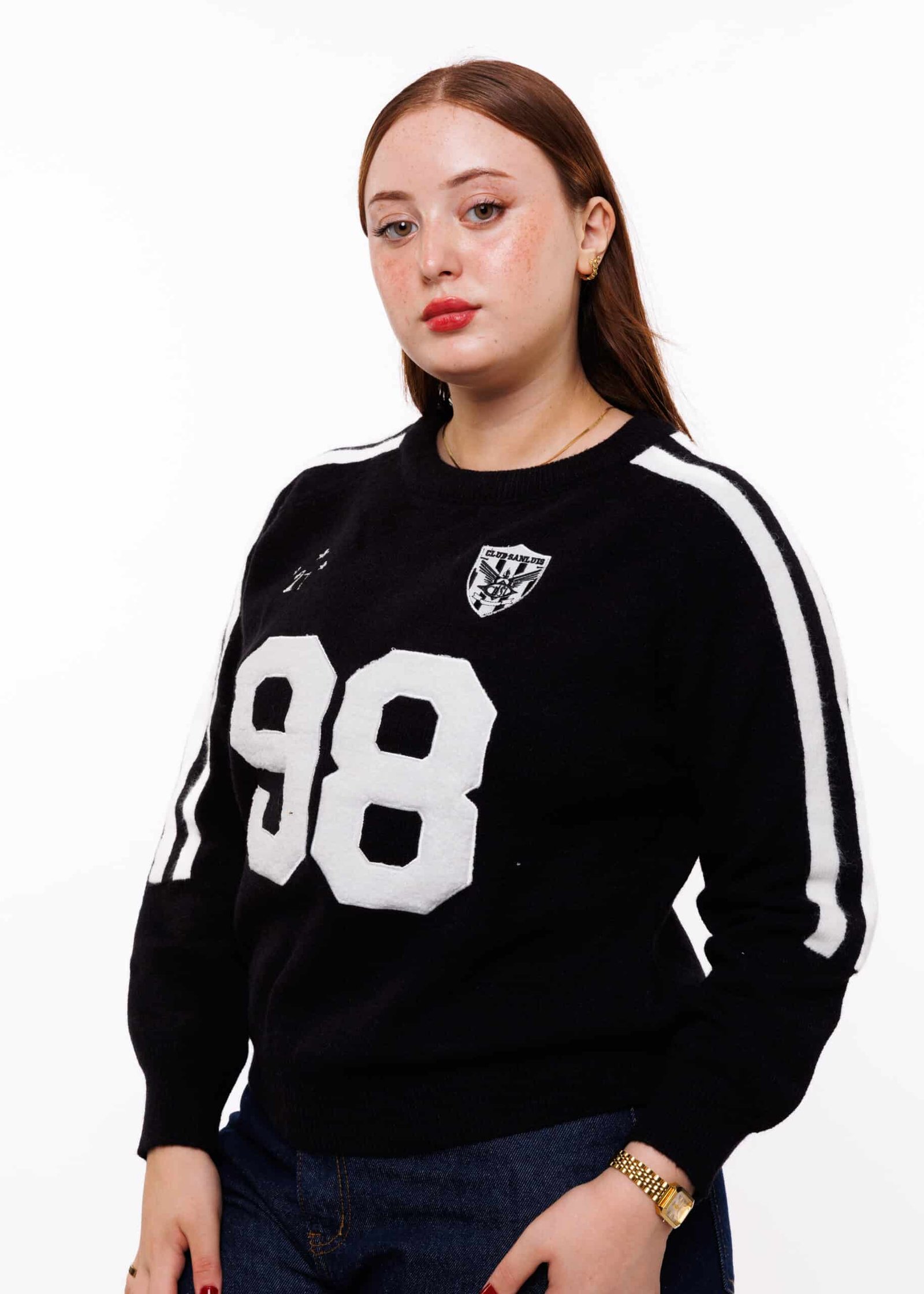 يأتي التصميم العصري للسترة بأرقام كبيرة مطبوعة على الجهة الأمامية (مثل الرقم 98)، تمنحها طابعًا شبابيًا حيويًا يعكس روح النشاط والطاقة. كما أنّ الألوان المتنوعة والمتناسقة بين الجسم والأكمام تضيف لمسة من الجرأة والتميز، لتمنحك مظهرًا لافتًا في كل مناسبة.