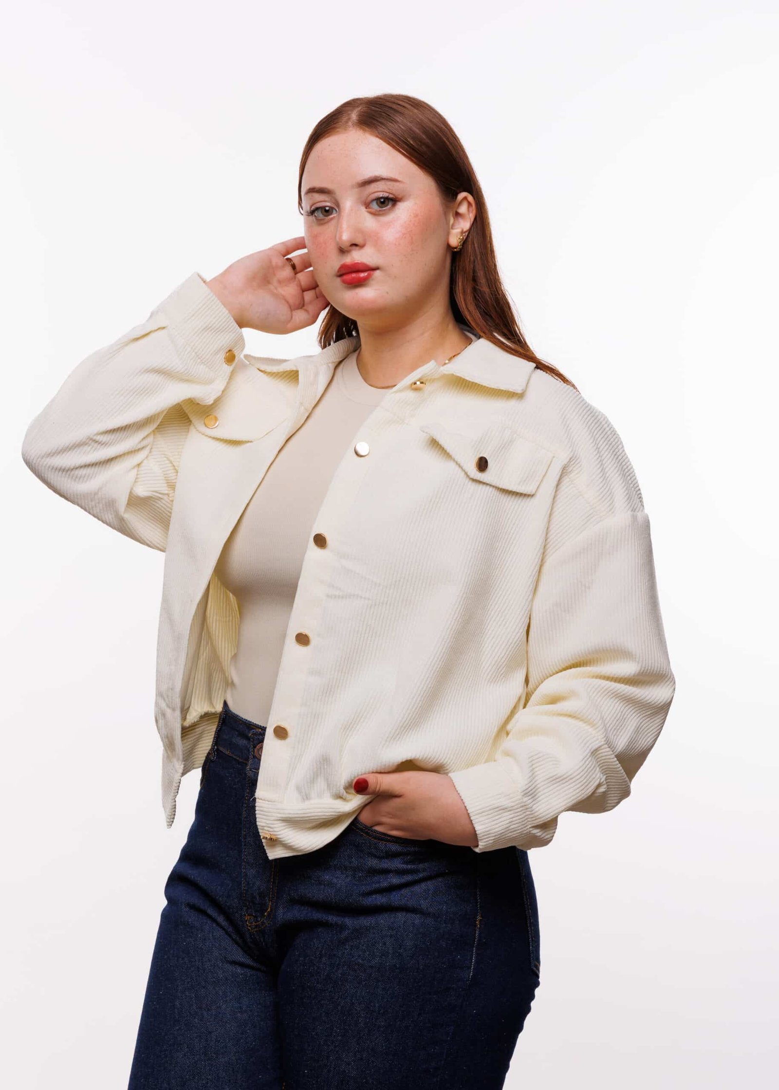 الأزرار الأمامية تضيف لمسة أنيقة وتتيح لك حرية التنسيق — يمكنك تركها مفتوحة لإطلالة عصرية أو إغلاقها لمظهر أكثر دفئًا ورسمية.