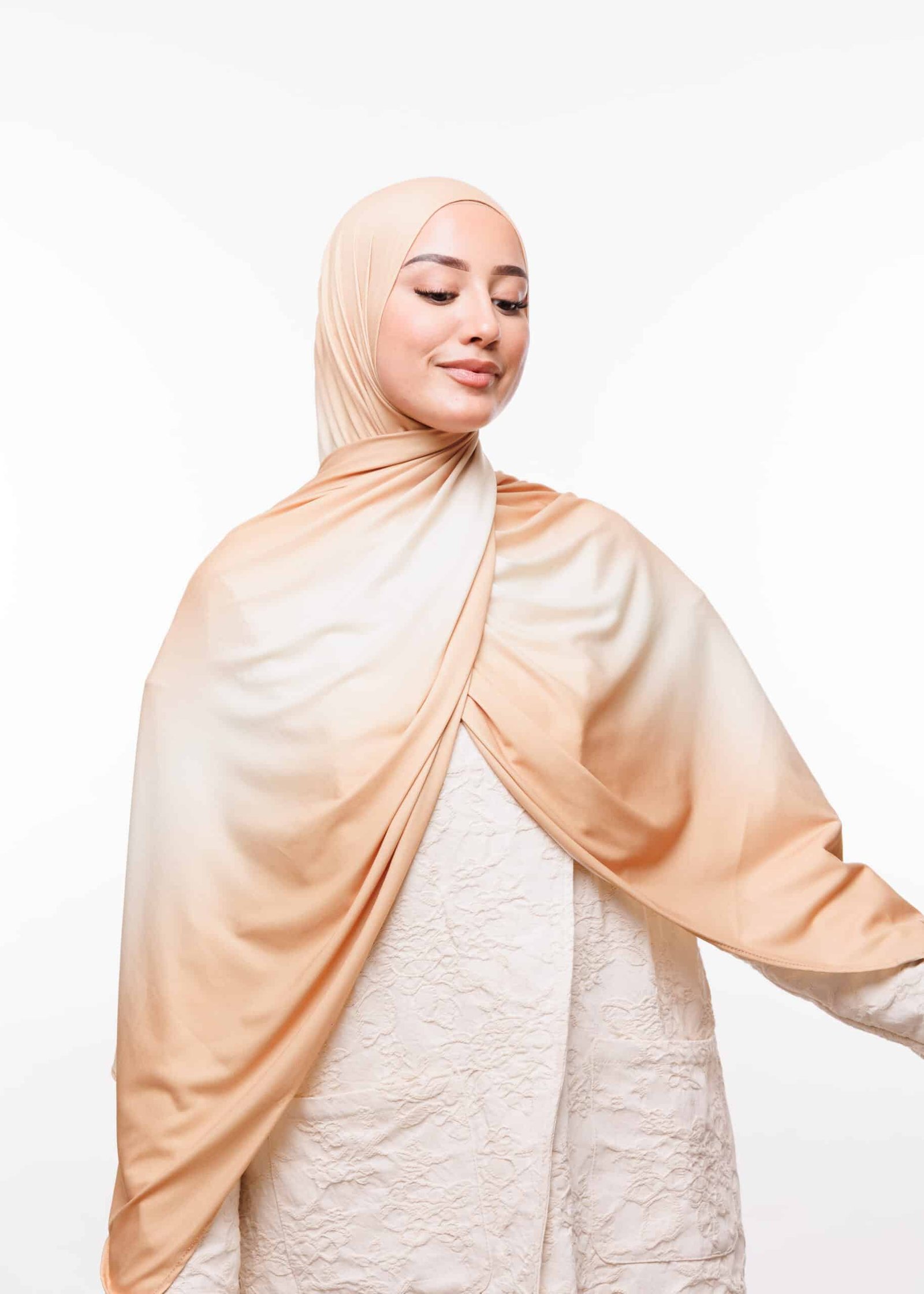 يمكنك ارتداء هذا الشال مع العبايات الخليجية، الفساتين الكاجوال، أو حتى الملابس الرسمية لإضفاء لمسة أنيقة. الألوان المتدرجة تمنحك مرونة أكبر في التنسيق مع مختلف قطع الملابس، مما يجعلها خيارك الأمثل للظهور دائماً بأناقة متجددة.