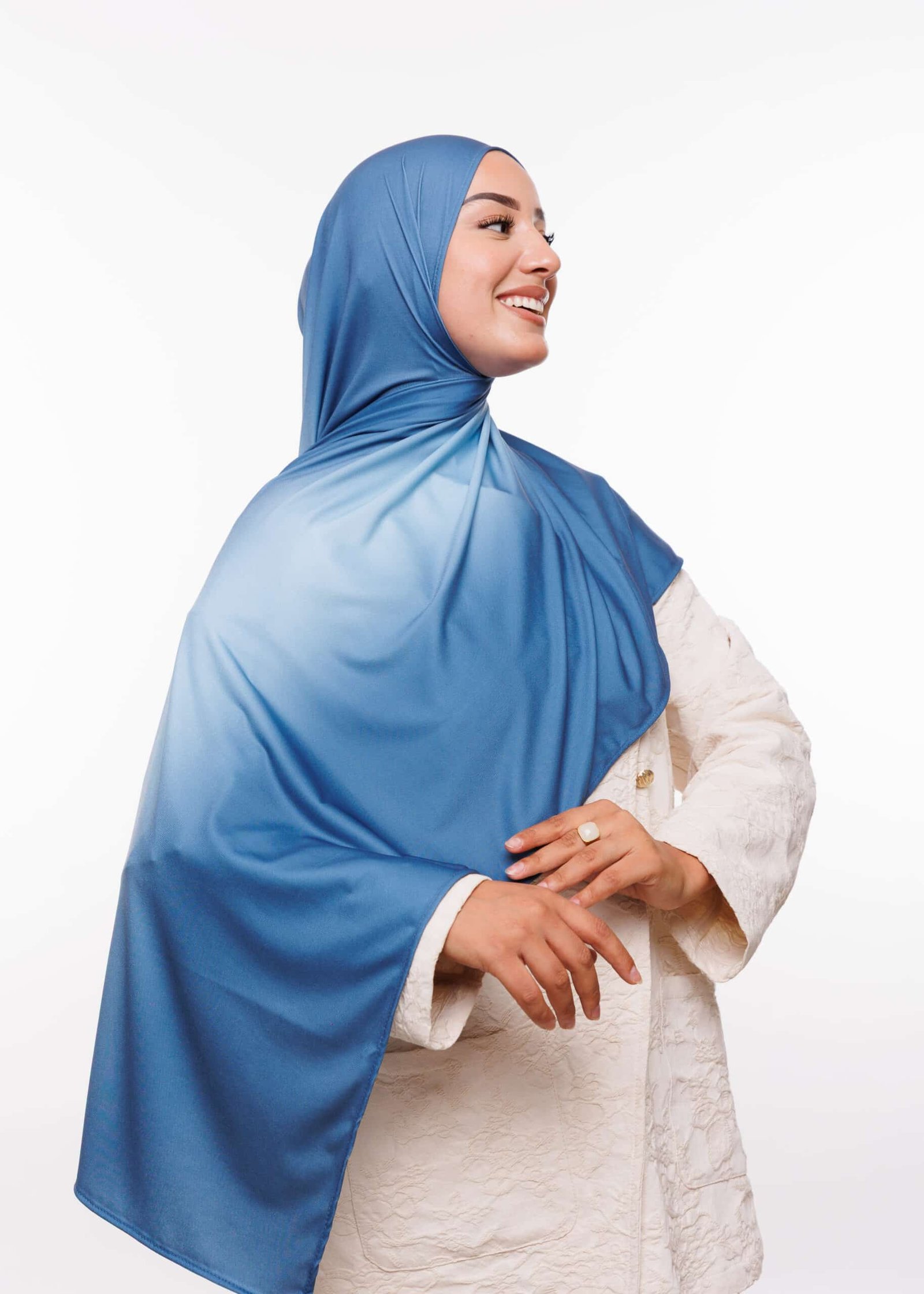يمكنك ارتداء هذا الشال مع العبايات الخليجية، الفساتين الكاجوال، أو حتى الملابس الرسمية لإضفاء لمسة أنيقة. الألوان المتدرجة تمنحك مرونة أكبر في التنسيق مع مختلف قطع الملابس، مما يجعلها خيارك الأمثل للظهور دائماً بأناقة متجددة.