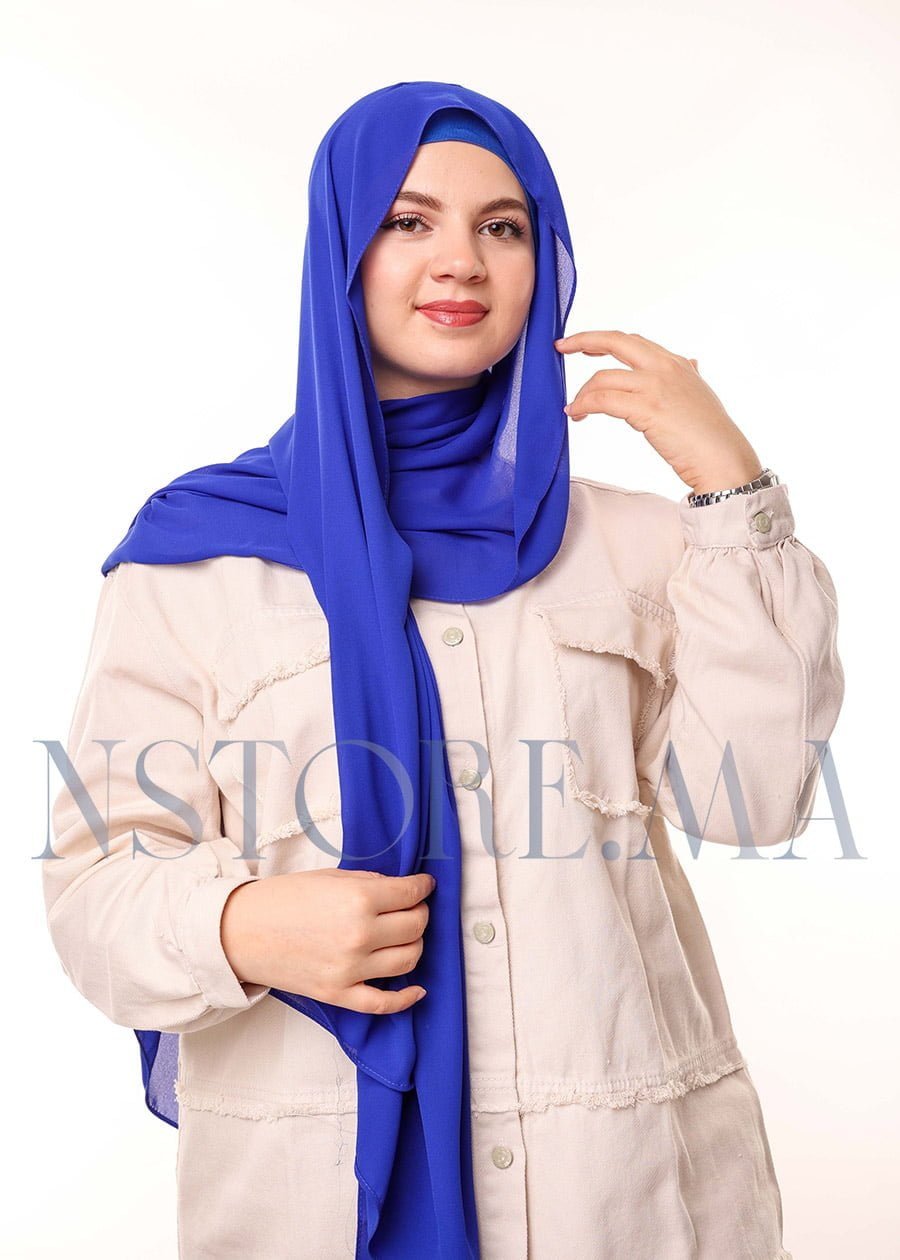 شال كريب بالبوني يربط من الخلف – أزرق ملكي –