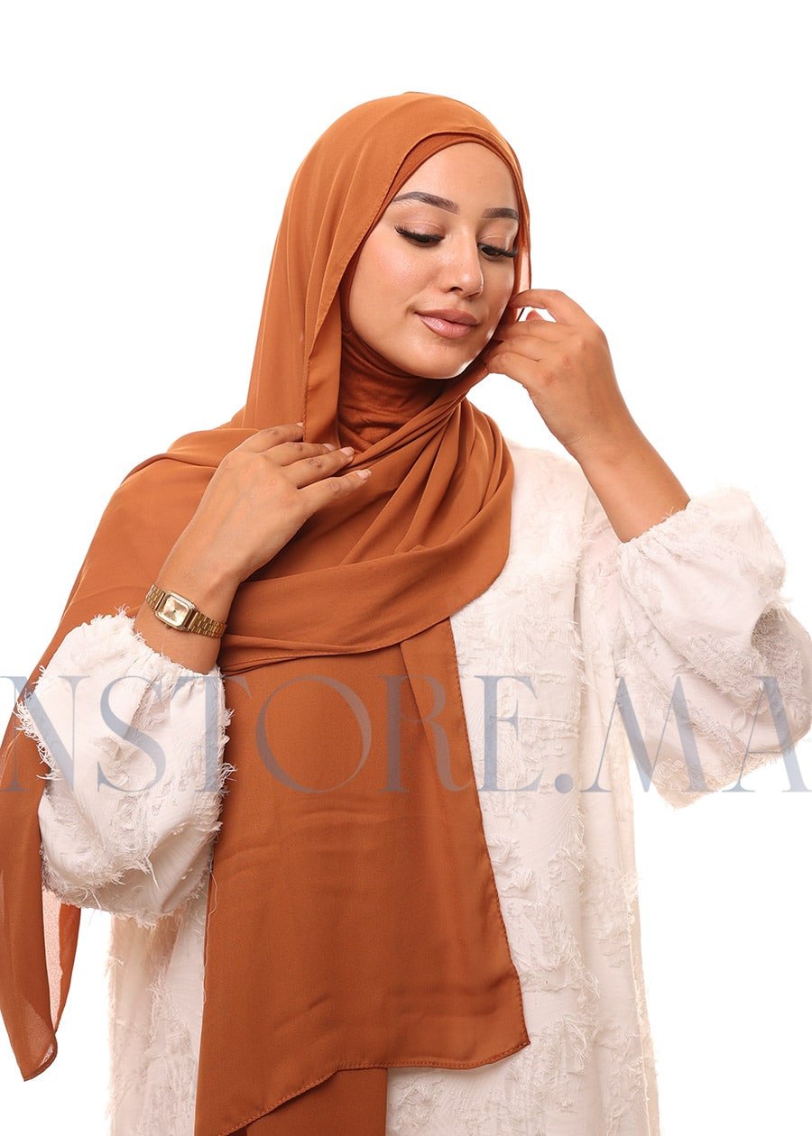 التصميم العام للثوب بسيط وأنيق، يناسب الذوق الرفيع، ويعكس الحشمة والوقار. اللون بني كراميل النقي يعطي مظهرًا نظيفًا ومشرقًا، ويضفي على من ترتديه طابعًا من الطهارة والسكينة، وهو مناسب جدًا للمناسبات الدينية والأجواء الروحية. التصميم يتماشى أيضًا مع الذوق العصري، حيث يجمع بين البساطة والوظيفة العملية.
