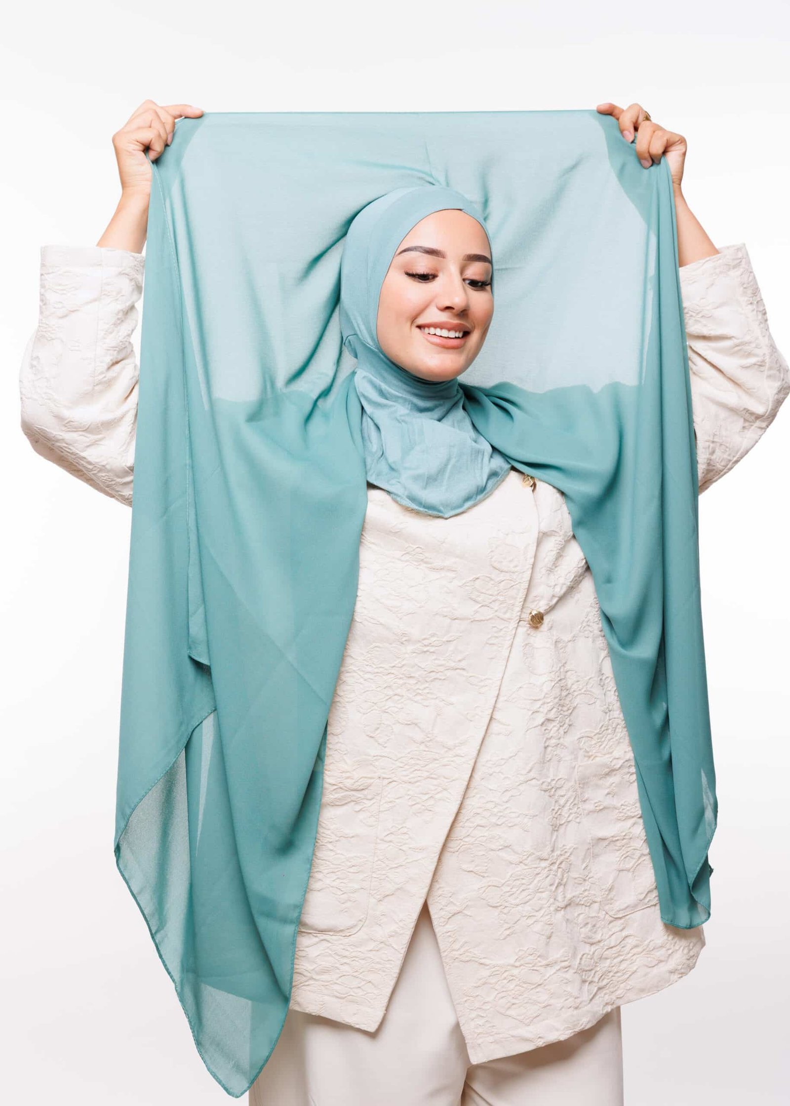 شال كريب حريري بالبوني “النينجا” -أخضر مائي-