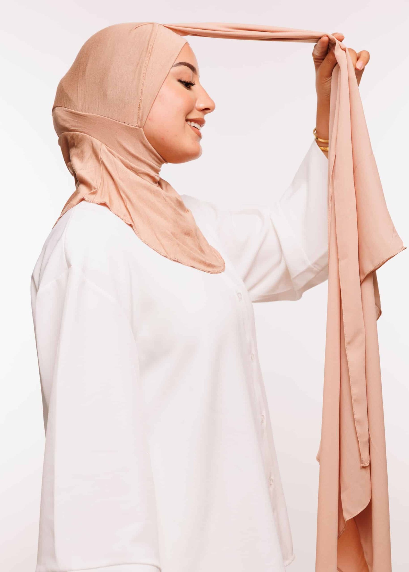 صُنع الثوب من قماش كريب عالي الجودة يتمتع بمواصفات مميزة من حيث المتانة والنعومة والانسيابية. كما أن القُبعة الداخلية مصنوعة من قماش Lycra المعروف بمرونته وتماسكه الجيد على الرأس، مما يجعله مريحًا أثناء الارتداء لفترات طويلة، دون التسبب في انزعاج أو ضغط. القماش الداخلي يساعد أيضًا في تثبيت الحجاب أو الغطاء دون الحاجة إلى دبابيس أو ملحقات إضافية، مما يجعل عملية اللبس سهلة وسريعة.