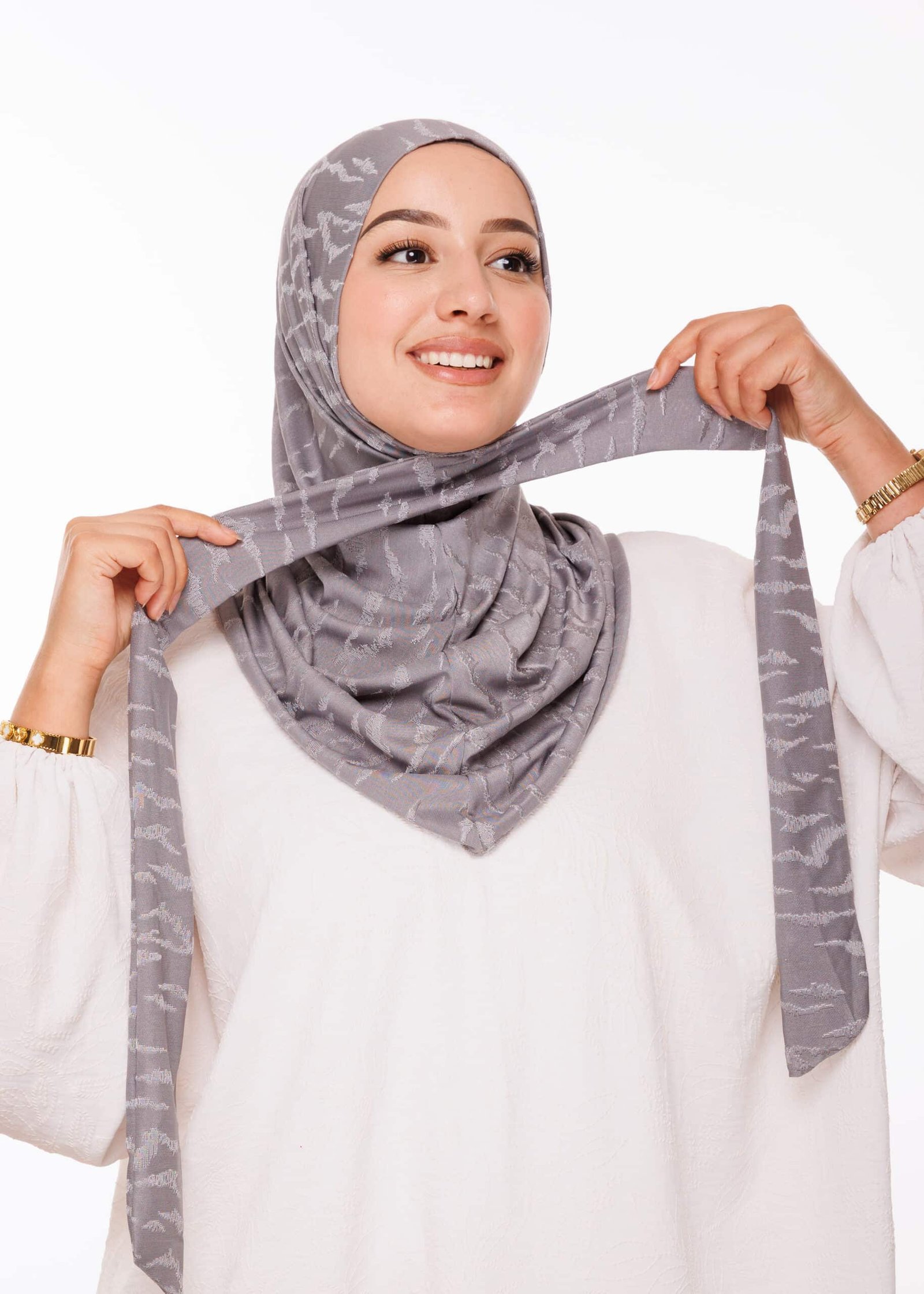 خامة الكشخة المطاطية تجعل من هذه الطبقية خيارًا مثاليًا لكل من تفضل الراحة والسرعة في الترتيب دون المساومة على الأناقة. كما أنها لا تنزلق بسهولة، مما يجعلها مثالية للأنشطة اليومية أو حتى للمناسبات التي تتطلب بقاء الحجاب ثابتًا لفترة طويلة.