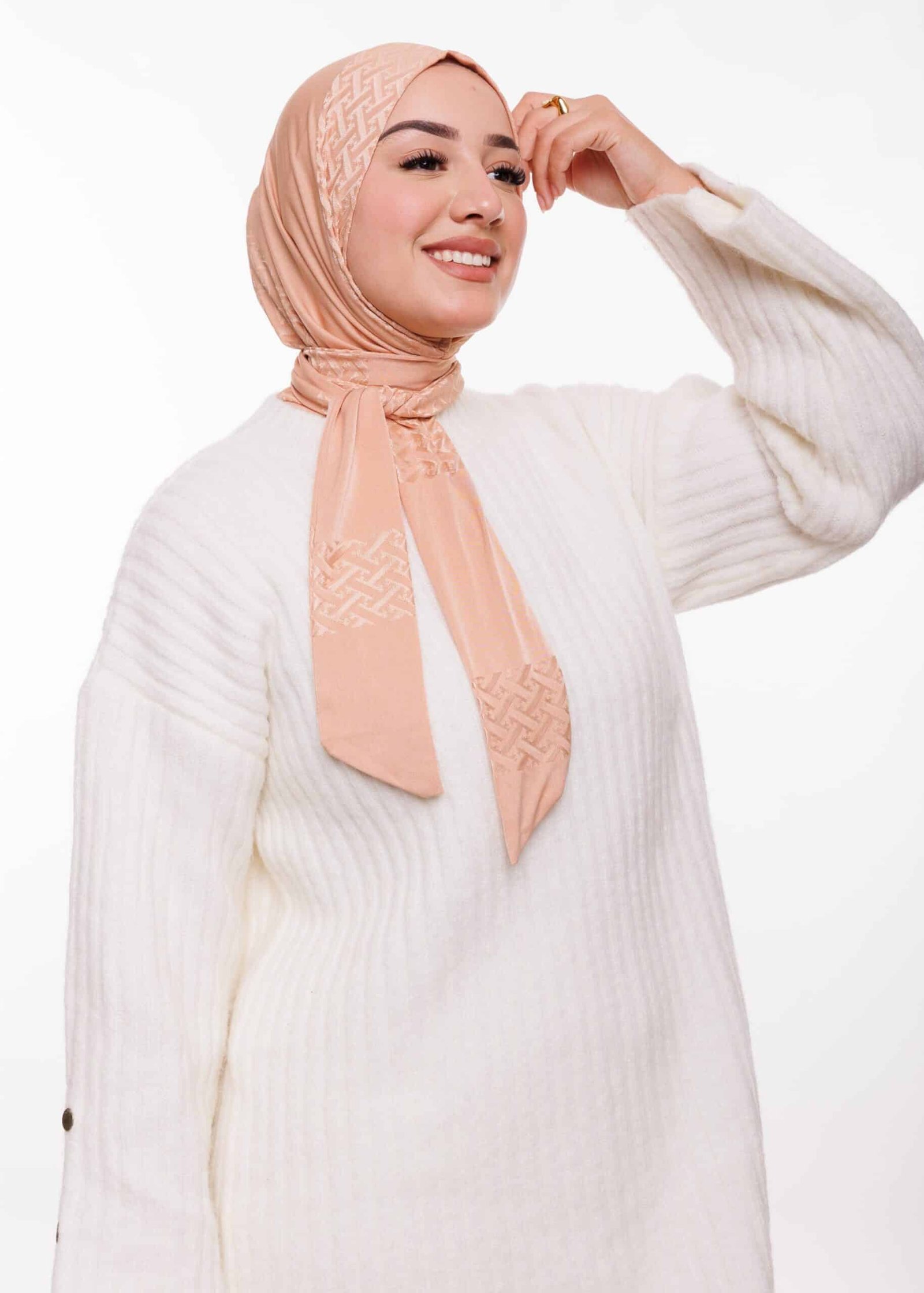 هذه الطبقية تمثل خيارًا مثاليًا للنساء اللواتي يبحثن عن التوازن بين الجمال والعملية. فهي مصنوعة من قماش فائق الجودة، يمتاز بكونه مطاطيًا (elastic)، ناعمًا على البشرة، غير شفاف، وسهل التثبيت، مما يسهّل ارتداءها حتى من قبل المبتدئات. تصميمها الانسيابي يجعلها مناسبة لجميع أنواع الأوجه، وتلائم مختلف الأساليب سواء الكاجوال أو الرسمية.